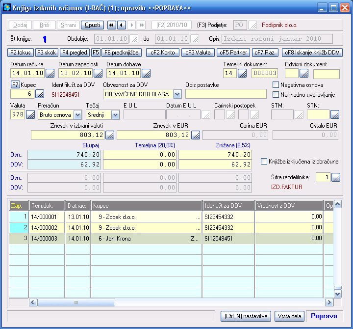 ![]() Modul za urejanje knjige davka na dodano vrednost |