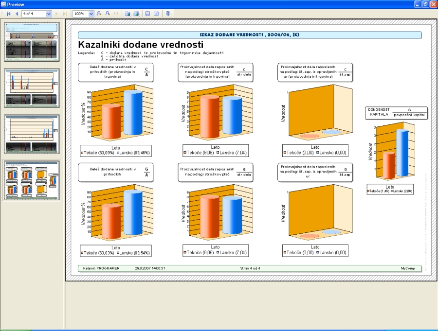 Moderno oblikovani izpisi narejeni z generatorjem poročil omogočajo hitro določitev različnih oblik in barv.