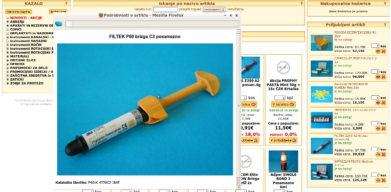 Za lažjo prepoznavnost artiklov in zato manj napak med samim postopkom naročanja je priporočeno, da za ima vsak proizvod tudi pripadajočo fotografijo.